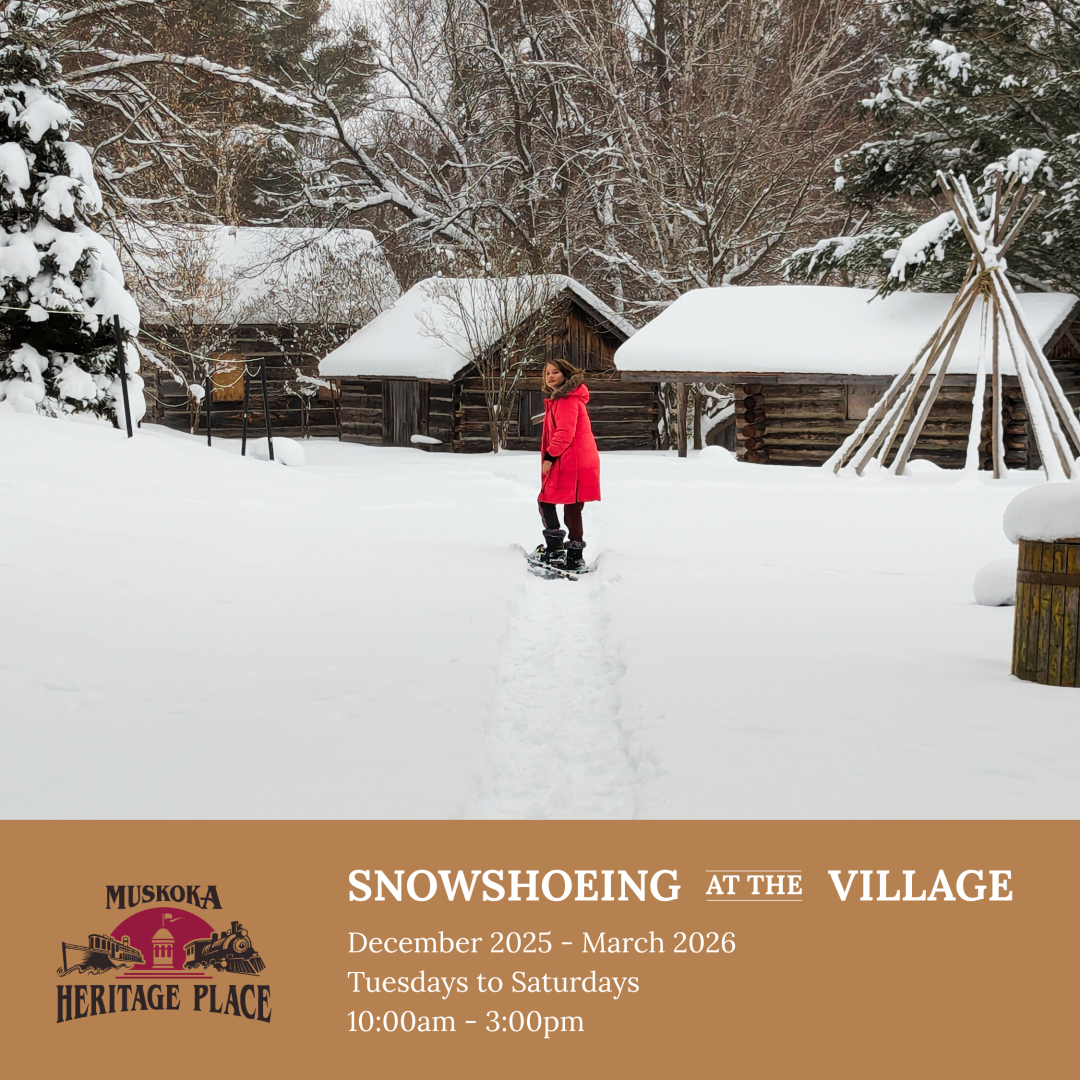 Join Muskoka Heritage Place for Heritage Week, Feb 16 to 21, 2026 for FREE winter snowshoeing in the wintry wonderland of the Pioneer Village.