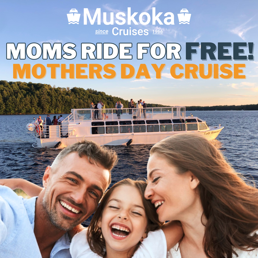 Back by popular demand, it’s Muskoka Cruise’s beloved “Mom’s Ride for FREE Mother’s Day Cruise”! Treat Mom to a day she’ll cherish aboard their vessels in Bracebridge and Port Carling on May 9th and 10th. Tickets are available at muskokacruises.com
