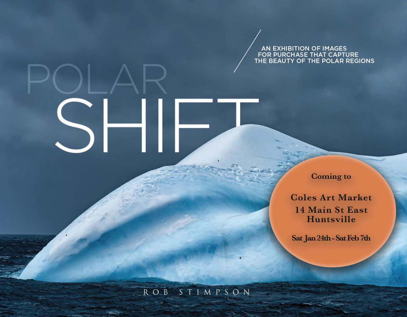Experience the wonder of Polar Shift – an exhibition of images that capture the beauty of the polar regions. From photographer Rob Stimpson, his work will be display at the Coles Art Market from January 24th to February 7th, 2026.